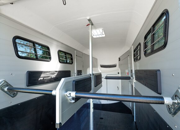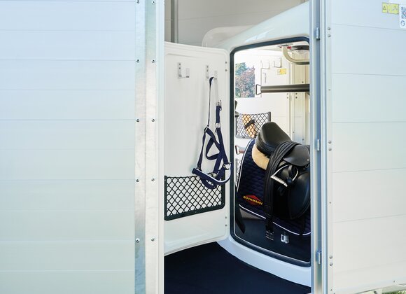 Der neue Portax L SKA Pferdeanhänger aus Aluminium verfügt über eine Sattelkammer, die von innen und außen zugänglich ist. Das verbesserte Raumkonzept und durch die 630 mm mehr Innenlänge im Vergleich zum SKA Model schaffen zusätzlichen Platz vor den Pferden. Die mannshohe Zugangstür und das neue Sattelkammer-Design mit größeren Türen und zusätzlichem Stauraum sind weitere Vorteile dieses Modells.