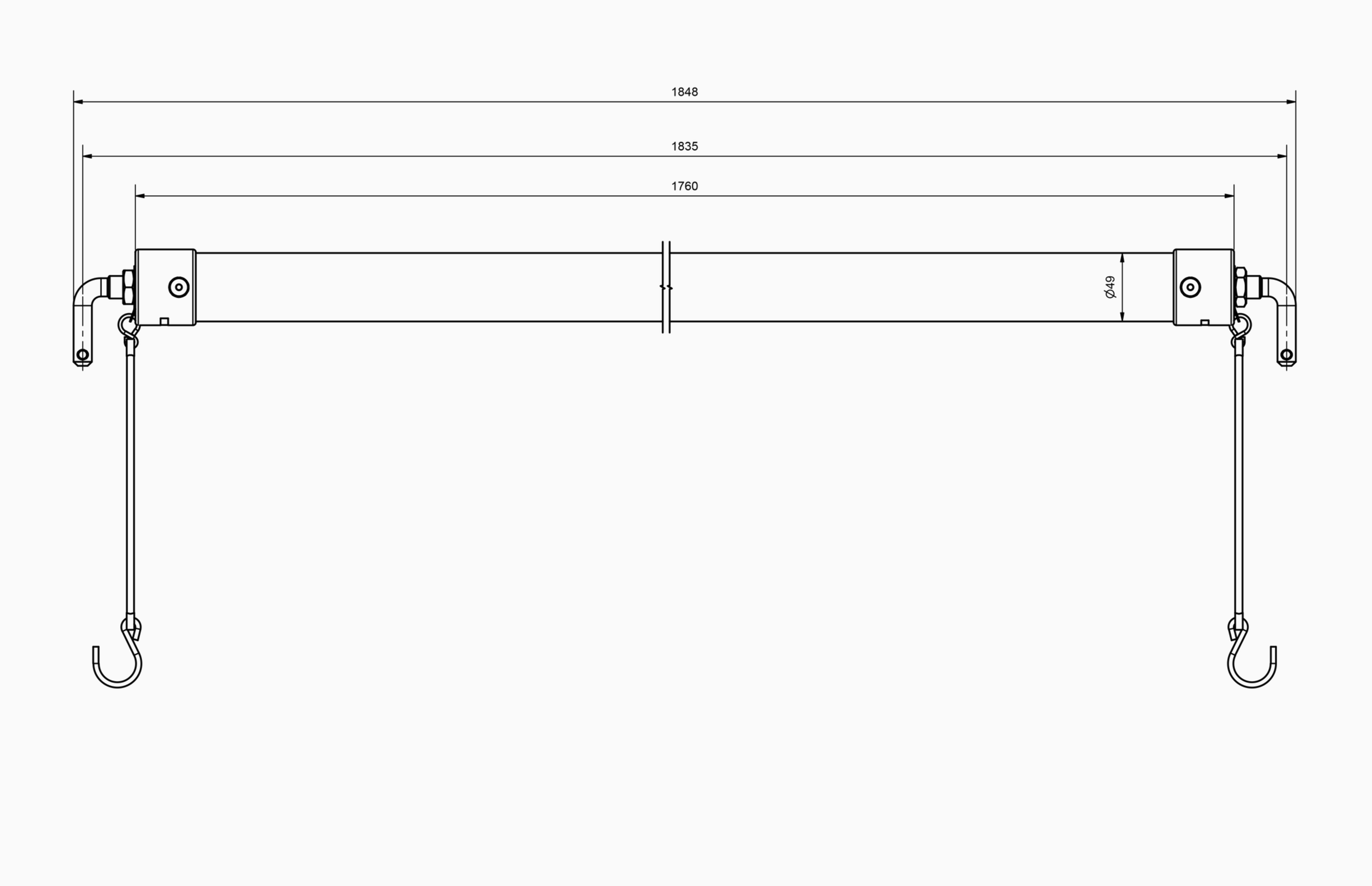 Robuste durchgehendegepolsterte Boxenstange für Pferdeanhänger ohne Trennwand. Die Lieferung erfolgt mit dem benötigten Montagematerial der Boxenstangenträgern.