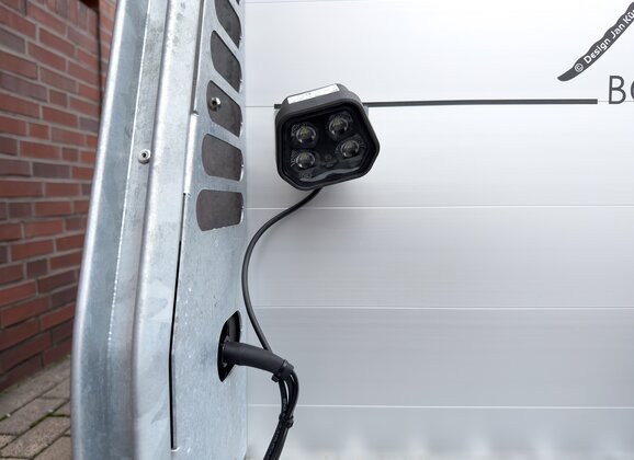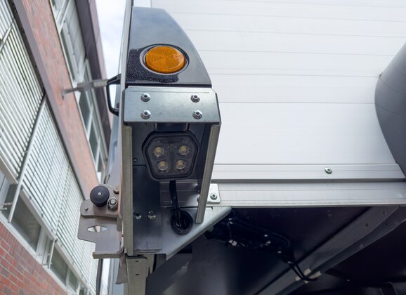 The ambient lighting consists of two lamps with 1,000 lumens each. They illuminate the immediate surroundings of the trailer and thus offer better orientation. Ideally, especially for the darker times of the year, areas that are difficult to see when maneuvering at dusk or in the dark can be well illuminated and are a great help, for example in preventing collisions. The vehicle works make recommendations on the placement of the two lamps, but they can also be attached to the trailer individually according to customer requirements. The lighting is not on while driving and is only activated when reverse gear is engaged.