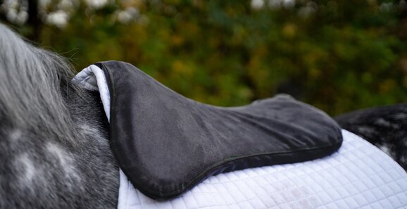 Thanks to a unique foam combination, the HopperPad offers proven pressure reduction and ensures a perfect balance between horse and rider. The upper foam adapts optimally to the shape of the horse's back through heat and weight, while the lower foam ensures excellent pressure distribution, especially during movement. These properties protect the horse's back muscles and promote healthy development.