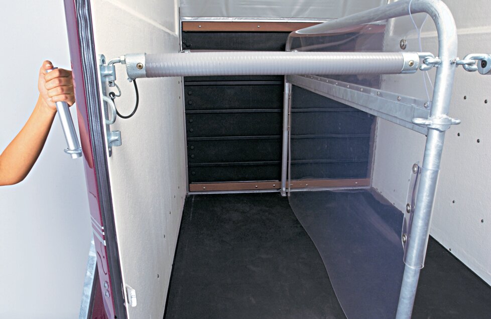The safety revolution in trailer construction, the Multi Safe System (MSS), is developed. The Böckmann safety stall bar system with adjustable height and length sets standards on the market. The unique panic system (front and rear) is still an absolute bonus on every Böckmann horse trailer.
