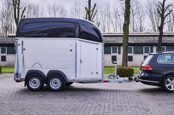 True to promise: The Champion C for two horses with robust aluminium side walls (1500 mm high), kick protection and the quality full aluminium floor as a standard feature is ideal for daily use.