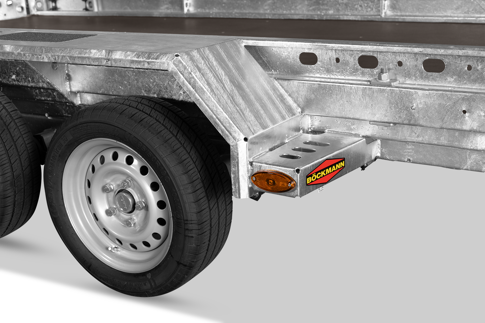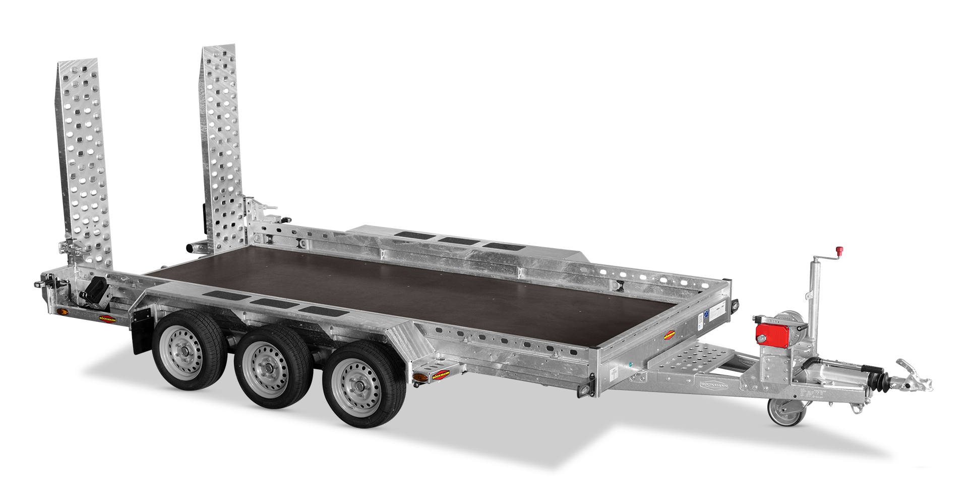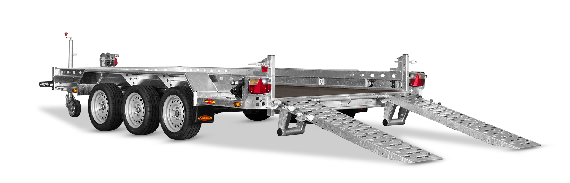 The Böckmann plant trailers are designed for the transport of mini and midi excavators as well as for the transport of working and lifting platforms. This model is equipped with folding and width-adjustable drive-on rails for fast loading and unloading. The variable and high-efficient trailer of the professional class offers practical solutions for all challenges.