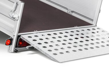 The robust and galvanised construction of the loading ramp with a length of 500 mm and a maximum load capacity of 300 kg includes perforation which minimises the risk of slipping when loading small vehicles and lowers the weight and wind load, resulting in lower fuel consumption.
