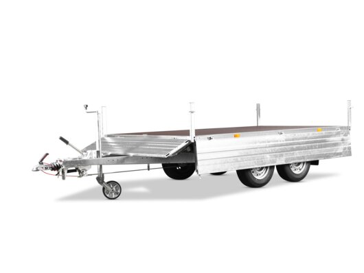 With the original Böckmann high-bed trailers in the twin-axle version you can master all heavy transport challenges with ease. They are especially designed to meet high demands and are perfect for convenient transport of heavy loads. But that is not all - this model is equipped with hinged steel side walls on all four sides. The robust and durable twin-axle models with lasting value naturally leave nothing else to be desired: the Böckmann range of accessories offers a wide choice of customised extras!