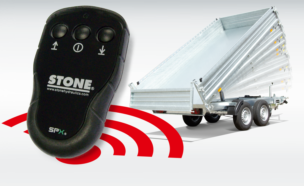 Large hydraulic telescopic cylinder with hand pump for easy raising and lowering of the loading platform, protected between the V-drawbar. The hydraulic hoses are safely laid in the longitudinal beams.