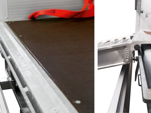 The new hinge profile is protected from falling dirt when the side wall is folded down by its closed construction at the top. The new side wall design ensures almost loss-free cargo transport. The side wall has a mechanical seal.