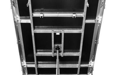 Welded and hot-dip galvanised base frame with solid steel profile bridge. The full longitudinal beams in the upper bridge provide extra stability as well as torsion and tilt resistance.
