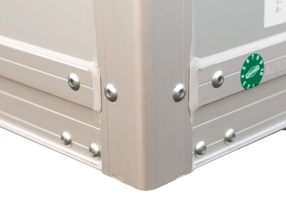 Solid frame construction made of anodised aluminium profiles, continuous steel cross beams and plywood sidewalls that are multi-bonded and plastic-coated ensure robustness, weather resistance and colour stability.