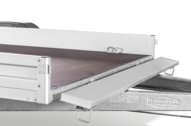 Vehicle loading is simplified with the original Böckmann drive-on rails for the UT series. The load capacity per pair is 2000, 2400 or 2700 kg (rail boxes can be retrofitted with UT-AL). Every model can also be equipped with original Böckmann motorcycle rails. Please always take the permissible total weight and the payload of your trailer into account when loading.