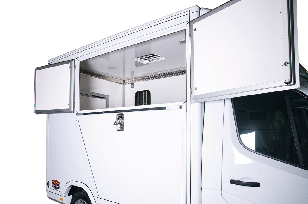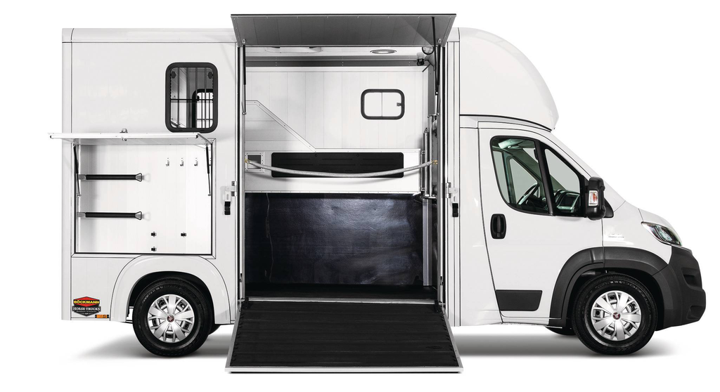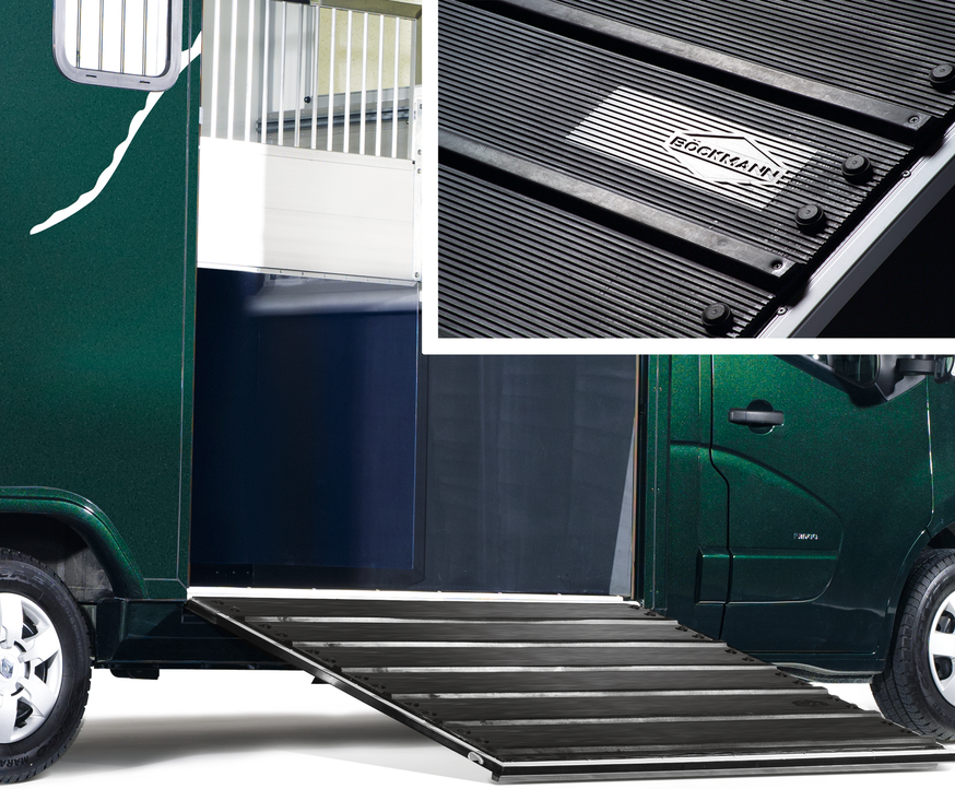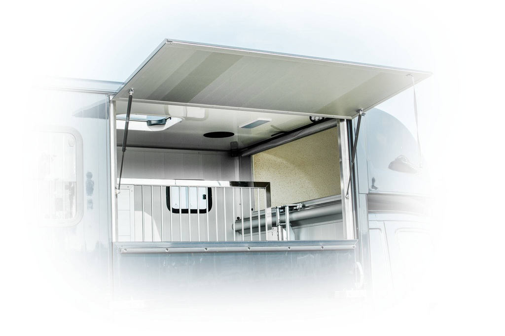 The horse compartment of the Compact L Basic is equipped with a passage which opens directly into the tack room. Loading the horse is simple thanks to a pivoting and optionally sliding partition wall. The passage from the tack room to the horse compartment can be closed with an optional lockable door. The chassis of the L variant is 270 mm longer than the basic model and therefore offers more space for individual designs.
