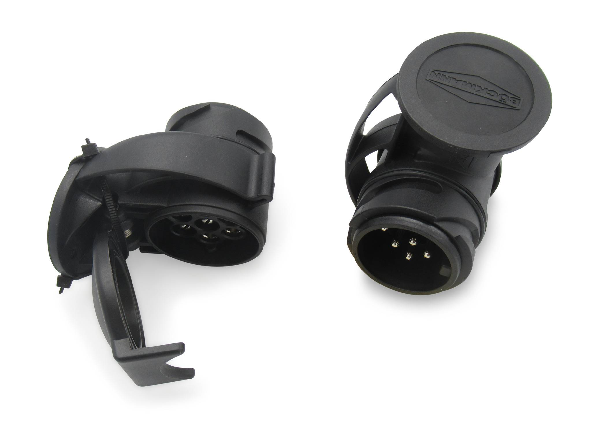 L?adaptateur pour une prise à 13 broches sur le véhicule tracteur et une prise à 7 broches sur la remorque connecte les différents types de prises des deux véhicules.