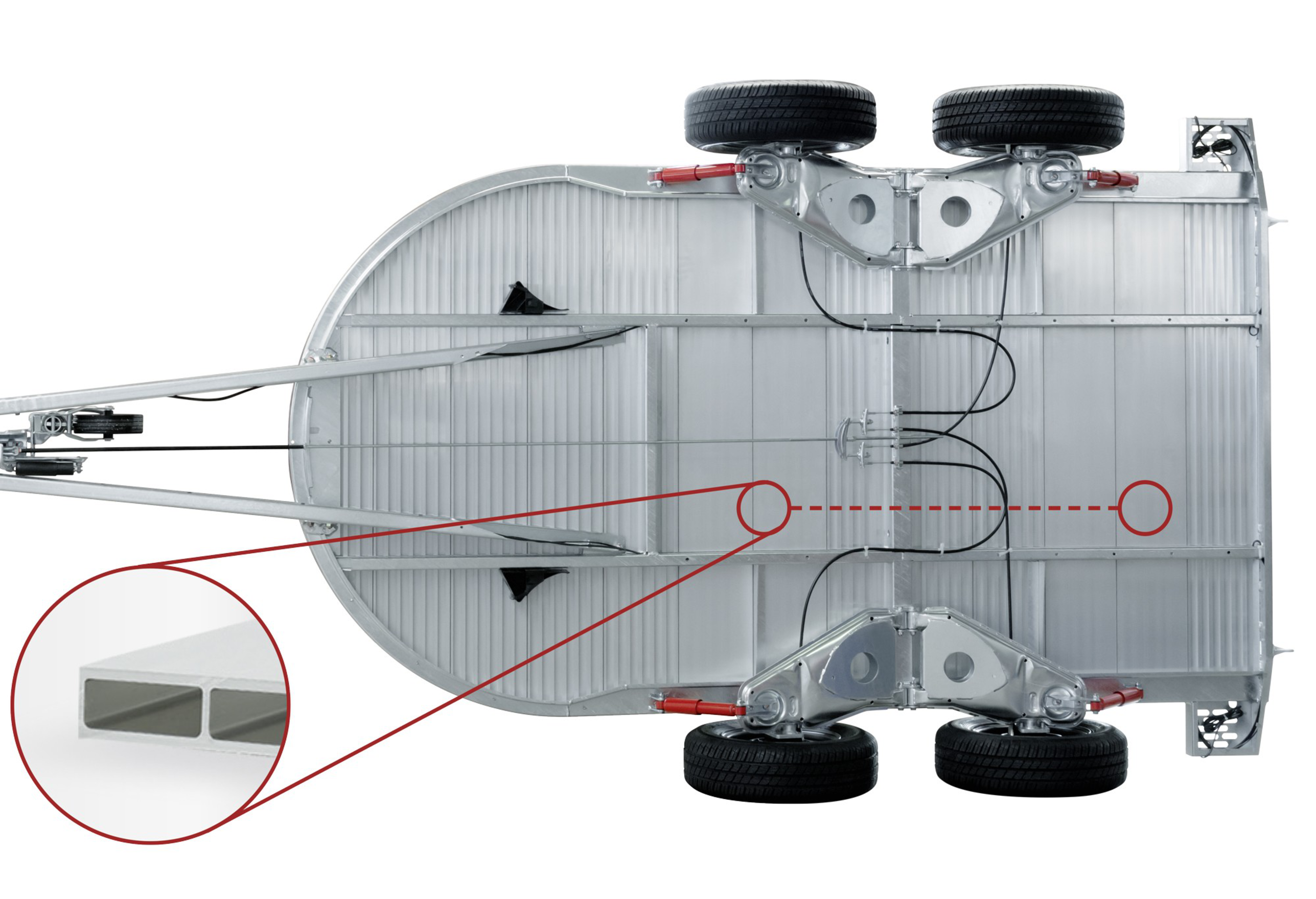 De montage van de Böckmann aluminium vloer is mogelijk voor alle paardentrailers met overeenkomstige basisafmetingen. De gesloten profielen worden in het stavlak van de paardentrailer gemonteerd.