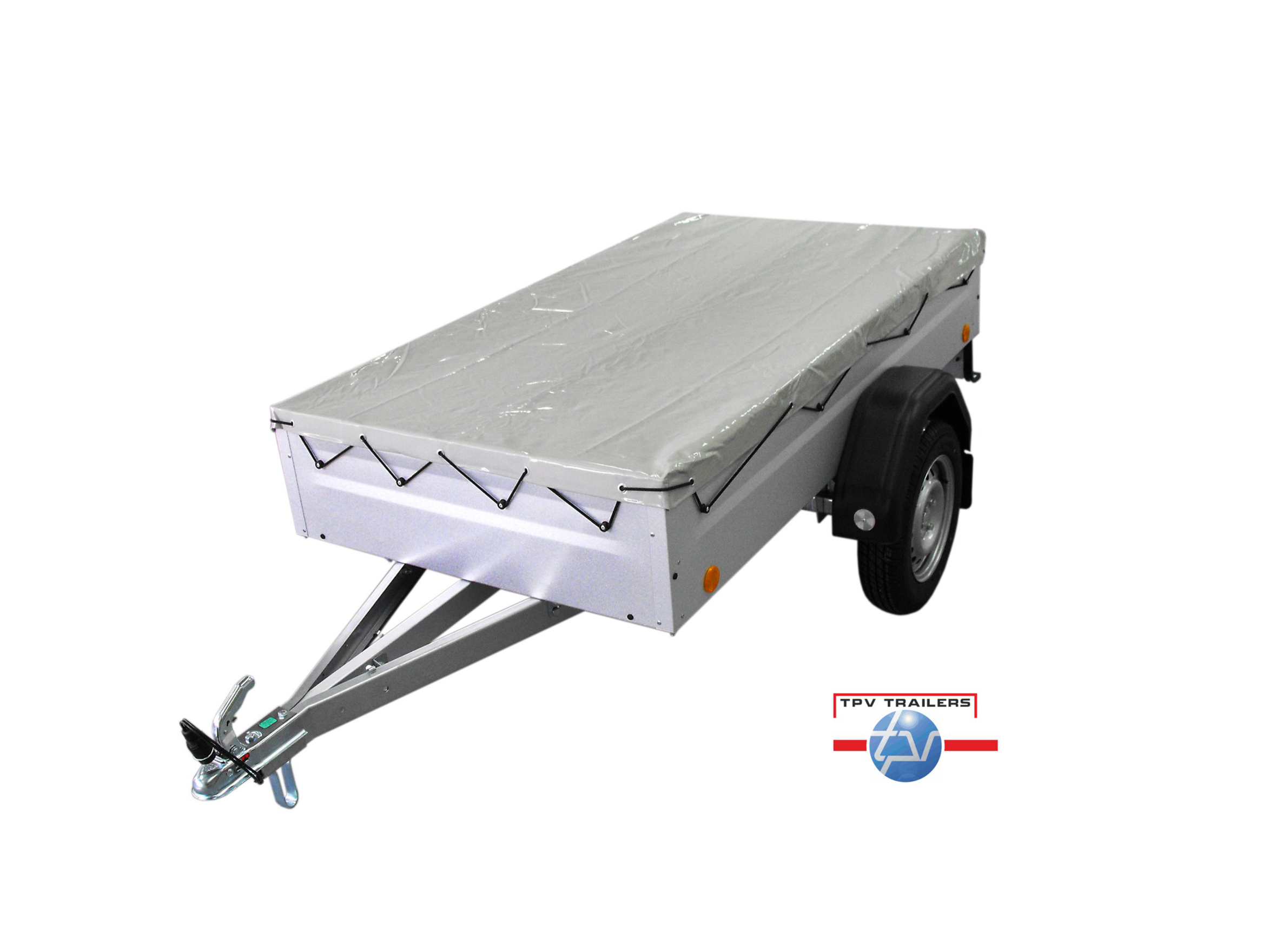 Het weerbestendige platte dekzeil wordt over het laadgedeelte van de oplegger gespannen om de lading tegen weersinvloeden te beschermen.