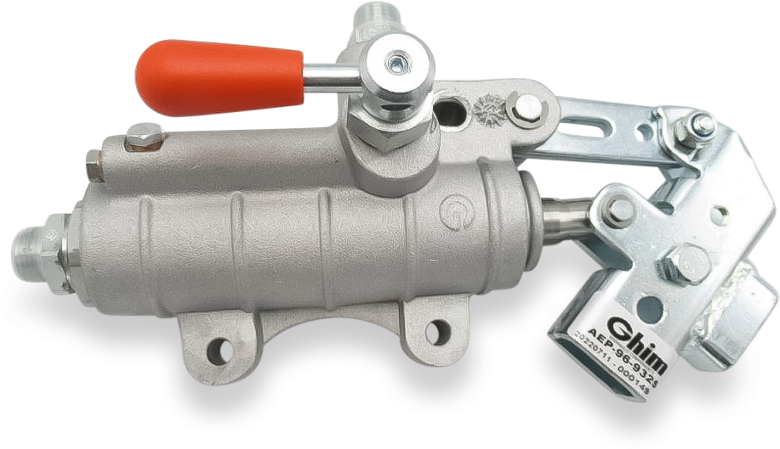 De noodhandpomp heeft een vermogen van 20 cc en wordt gebruikt voor het kiepen van de autoaanhanger.