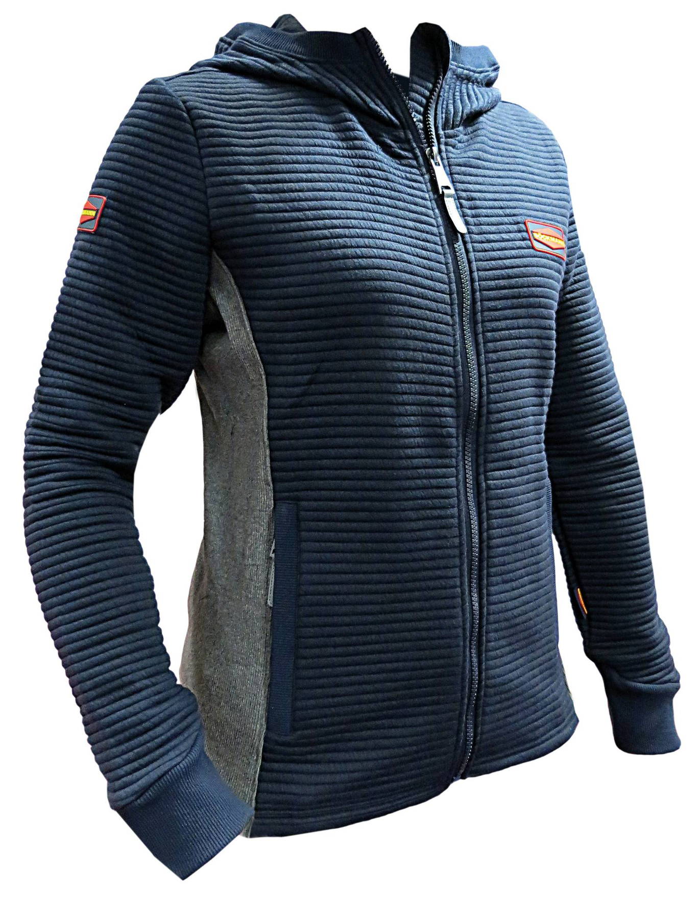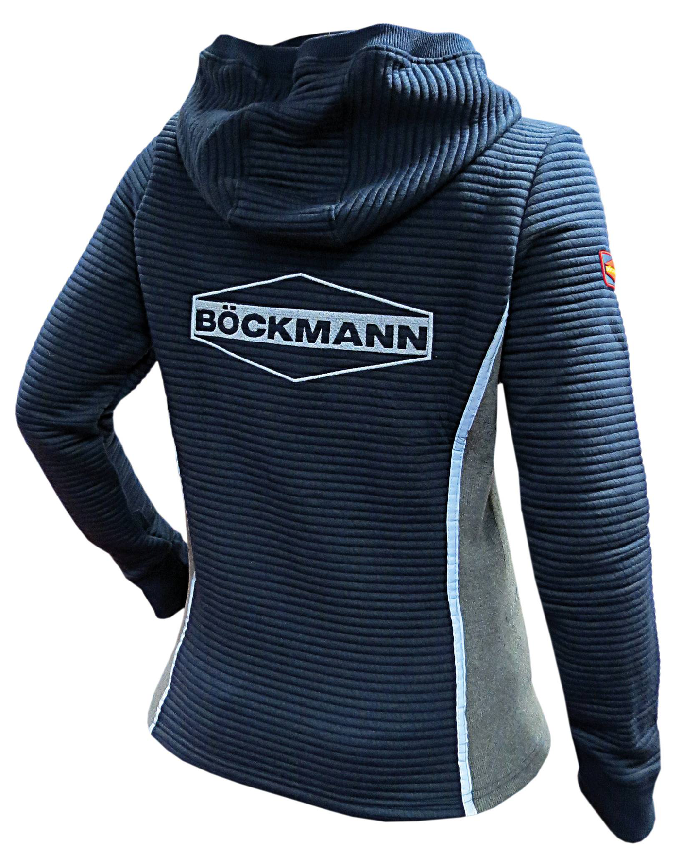 Moderne sweatjack voor kinderen met capuchon. De jas wordt visueel verfraaid door het fluorescerende Böckmann-logo op de rug en de getailleerde strepen. De jas is sportief elegant en laat zich zeer goed combineren.
