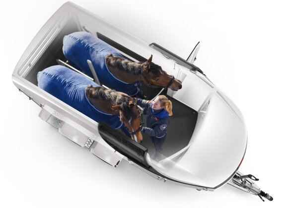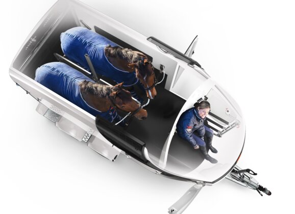 Der Neo bietet besonders viel Platz, nicht nur für Pferd, sondern auch für Reiter. Er ist in zwei Größen verfügbar: Neo und Neo L. Beide Varianten bieten mit 1,76 m Breite viel Standfläche für die Pferde.