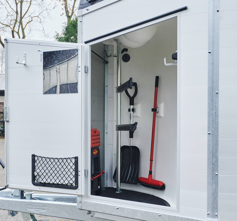 durch das Trennwandkonzept. Auf Wunsch können Sie Ihren Pferdeanhänger mit der Trennwand ausrüsten, die zu Ihrem Pferd passt. Standard ist die Trennwand 165 für Großpferde (1,65 m Stockmaß), ohne Aufpreis im Zubehör kann die Trennwand 180 für übergroße Pferde (1,80 m Stockmaß) gewählt werden. Weitere Höhen auf Anfrage.