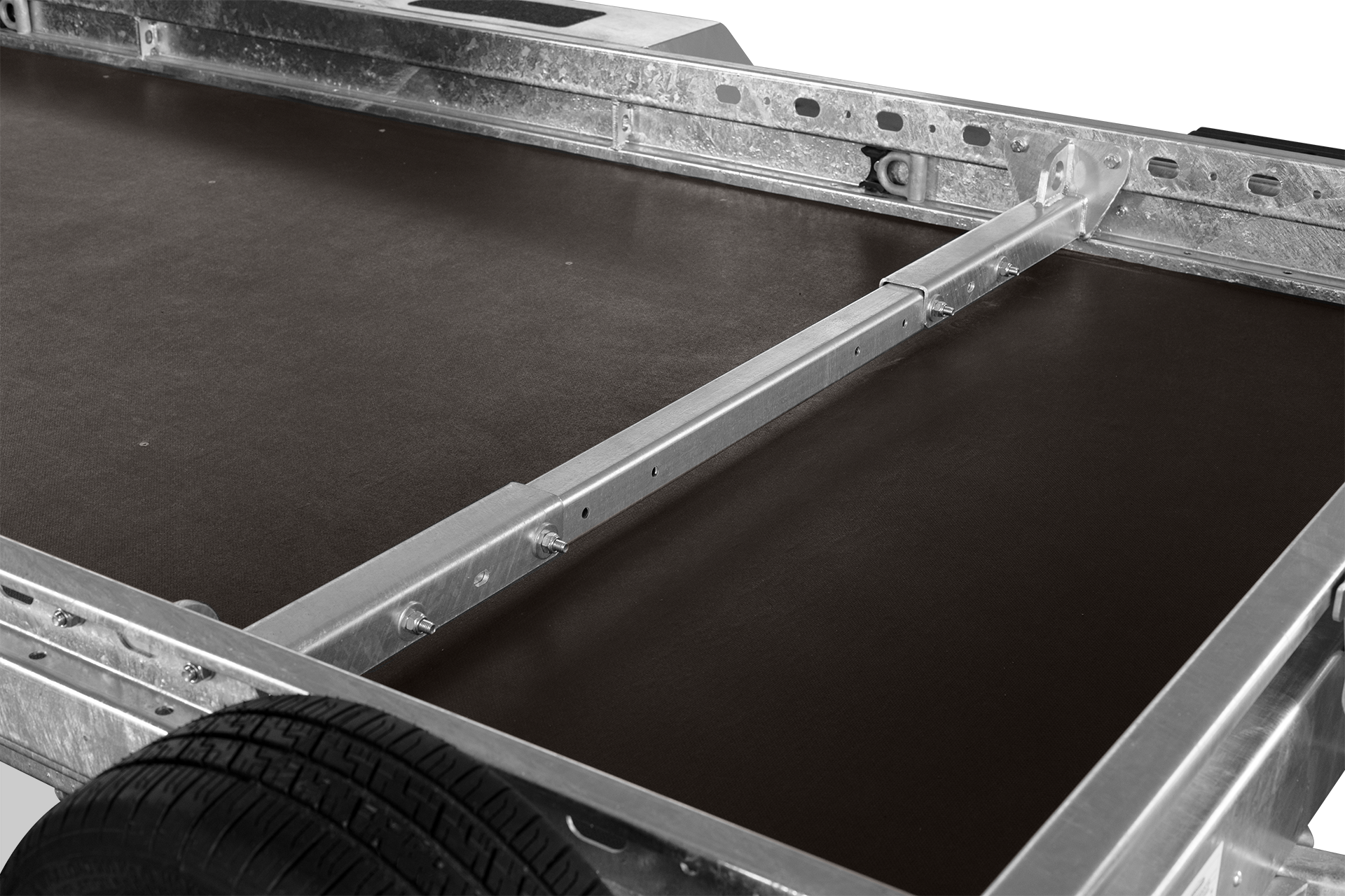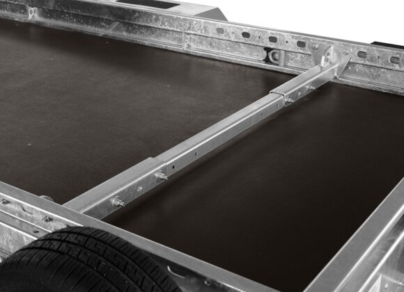 Massive und feuerverzinkte Stahlkonstruktion mit Stahl-Längsträgern. Die vorne angebrachte Stirnwandgalerie und die Seitenwandgalerien sind ideal, um z.B. Zubehör flexibel und einfach zu sichern.