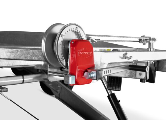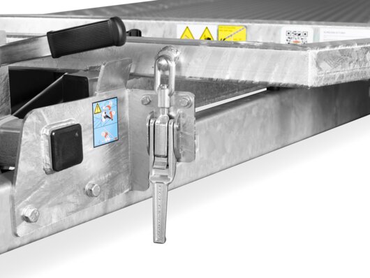 ermöglicht ein leichtes Kippen des Anhängers. Dank der EasyHold-Funktion ist ein unplanmäßiges Absenken der Oberbrücke ausgeschlossen: Die Oberbrücke bleibt auch nach Herunterlassen des Fahrzeugs fixiert, bis das Ventil gelöst wird.