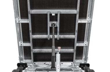 Verschweißter und feuerverzinkter Grundrahmen mit massiver Stahlprofilbrücke. Durch die hohen Längsträger in der Unterbrücke wird Verwindungsund Kippsteifigkeit erzeugt.