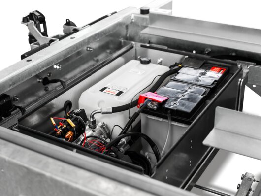 für das schnelle und bequeme Abladen von Schüttgütern (bis Modell 3218 optional abwählbar). Die neue Antriebsbatterie verfügt über noch mehr Leistung und bietet ein Maximum an Kippvorgängen.