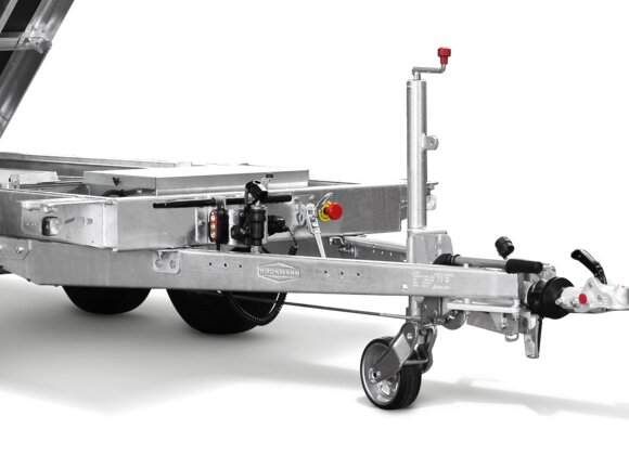 Die neuen Dreiseitenkipper DK-AL 4121/35 P T als Tridem bzw. Dreiachser sind Fahrzeuge in absoluter Profi-Qualität und Ausstattung. Sie überzeugen durch eine massive und robuste Konstruktion, einen beeindruckenden Kippwinkel von 45° und einem versenkten Zurrbügelsystem. Ein weiteres Qualitätsmerkmal ist eine besondere Stabilität und Gewichtverteilung aufgrund der zusätzlichen Achse. Die mechanische Abdichtung an den Eckrungen und an den 350mm Alu-Bordwänden sorgt für einen sicheren Transport. Der Stahlblechboden auf der Siebdruckbodenplatte und Winkelhebelverschlüsse machen diese Fahrzeuge zu verlässlichen täglichen Begleitern. Serienmäßig gehören die DK-AL 4121/35 P T zu den sichersten Kippern im Markt - denn die E-Hydraulik ist Serie, genau wie die einfache und CE konforme Notausschaltung.