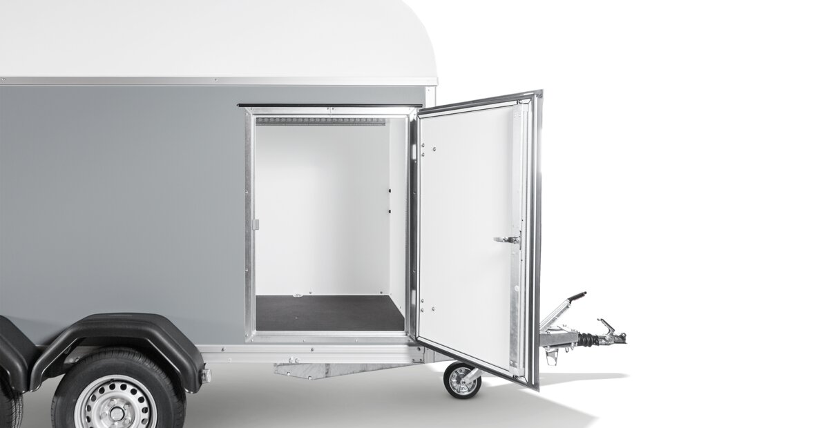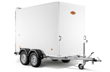Hier stimmt einfach alles! Die Plywood-Kofferanhänger der KT-Serie mit weißen oder wahlweise grauen Aufbauten haben erstklassige Rahmenbedingungen: Die Konstruktion ist aus einem robusten Aluminium-Doppelstegprofil gearbeitet und so von hoher Stabilität. Zusätzlich sorgt das tiefergelegte Fahrgestell für ein komfortables Aufladen. Mit einer Innenraumhöhe von 2085 mm meistern Sie mit dem Modell KT 3015/27 H F praktisch und sicher jede schwere Transportaufgabe.