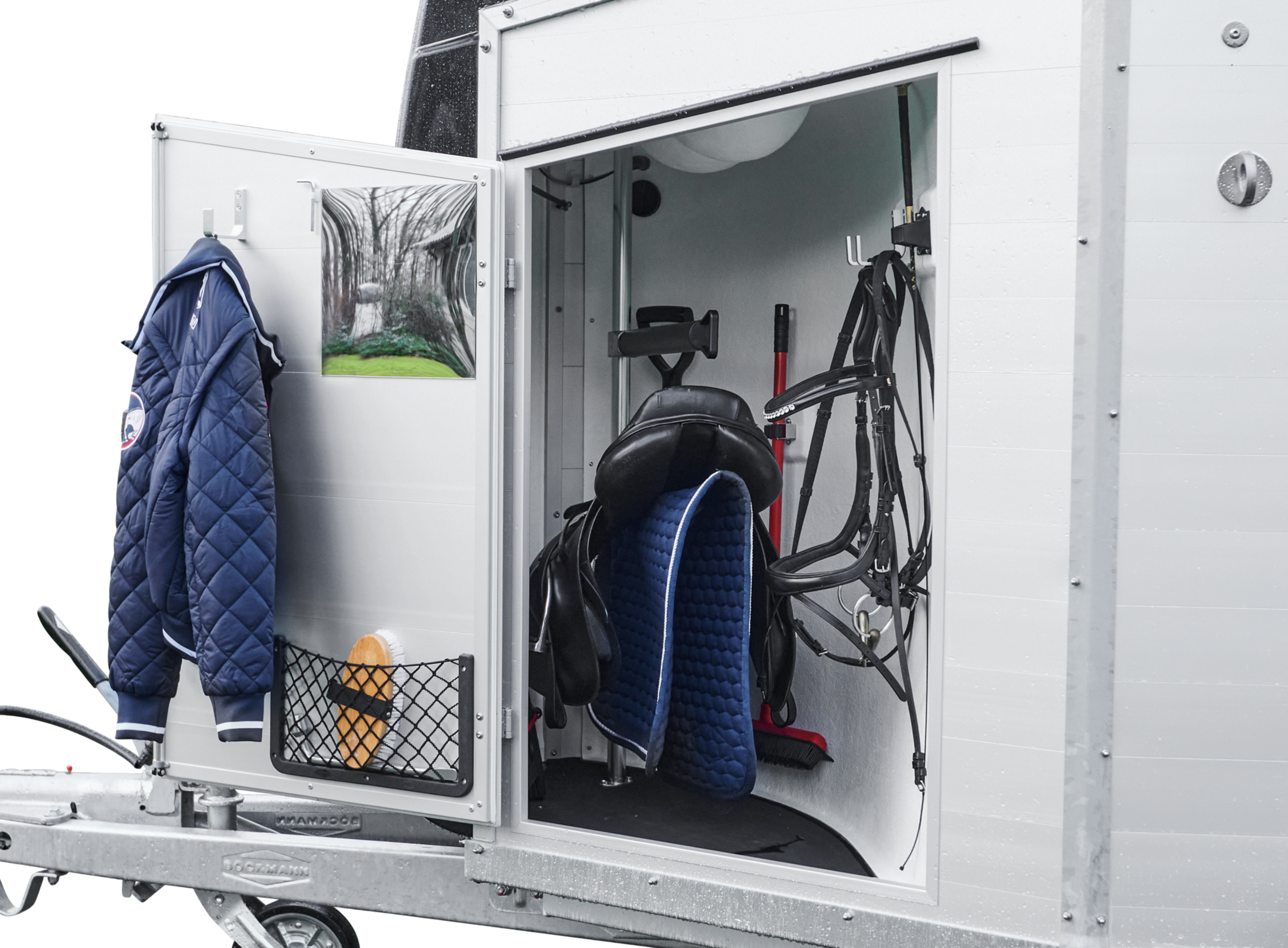 Der Champion R verfügt über einen Polyesterbug, der den Frontbereich deutlich vergrößert. Für viel Platz für Reitutensilien sorgt die großzügige Sattelkammer. U.a. mit ausziehbaren Sattelhaltern, Kunststoffschaufel, Teleskopbesen, Spiegel.