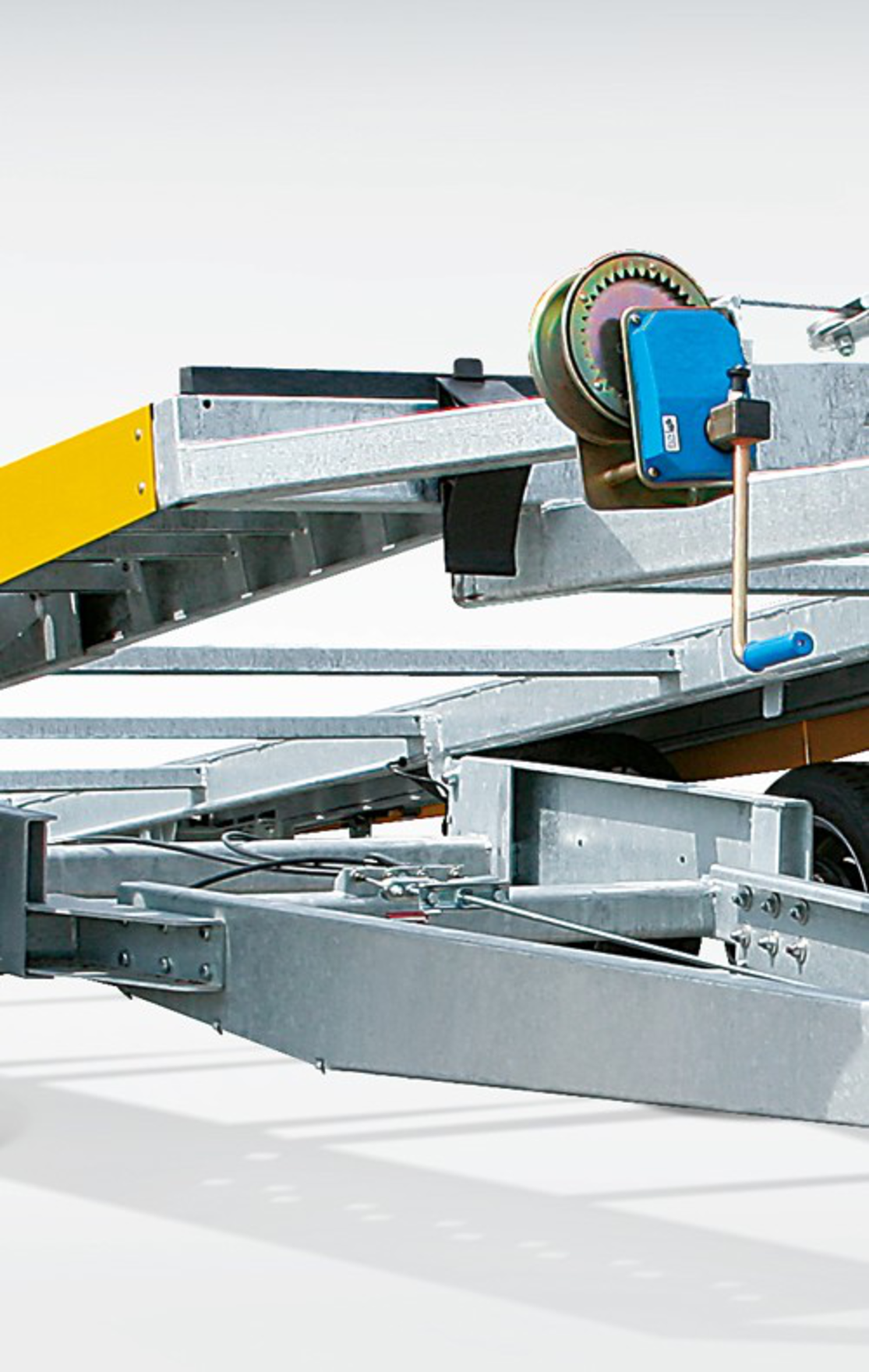 Stabile, mechanische Seilwinde mit Windenbock, für ein bequemes und sicheres Be- und Entladen.