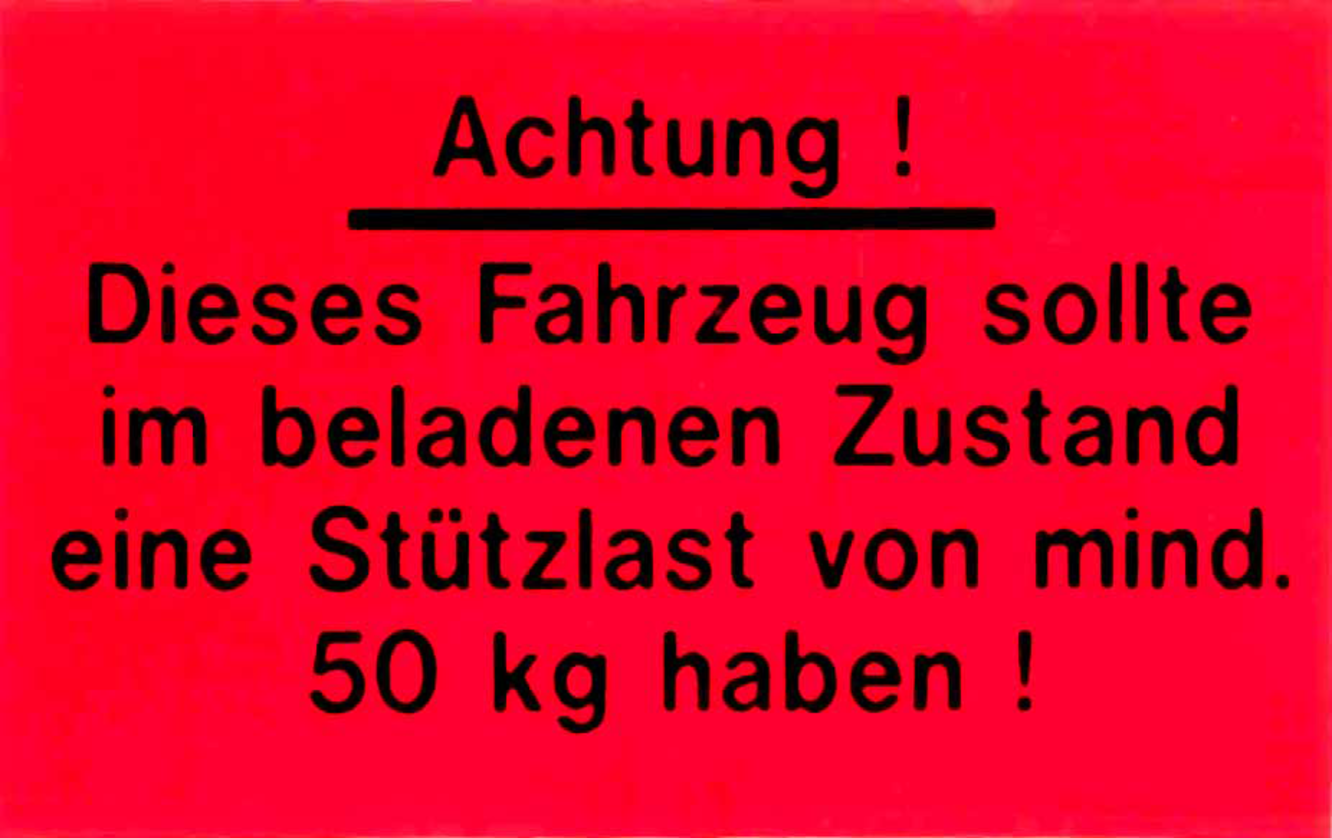 "Warning! This vehicle should have a tongue load of at least 50 kg when loaded!"