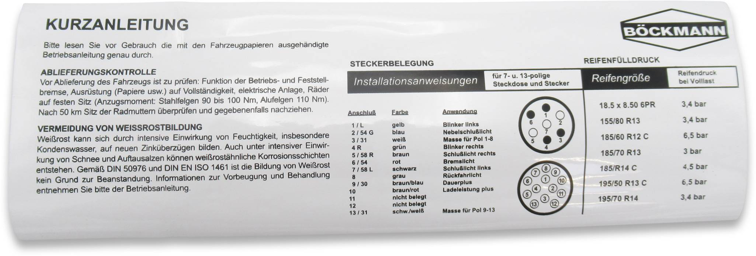 Information stickers for tyre size, tyre pressure and plug assignment.