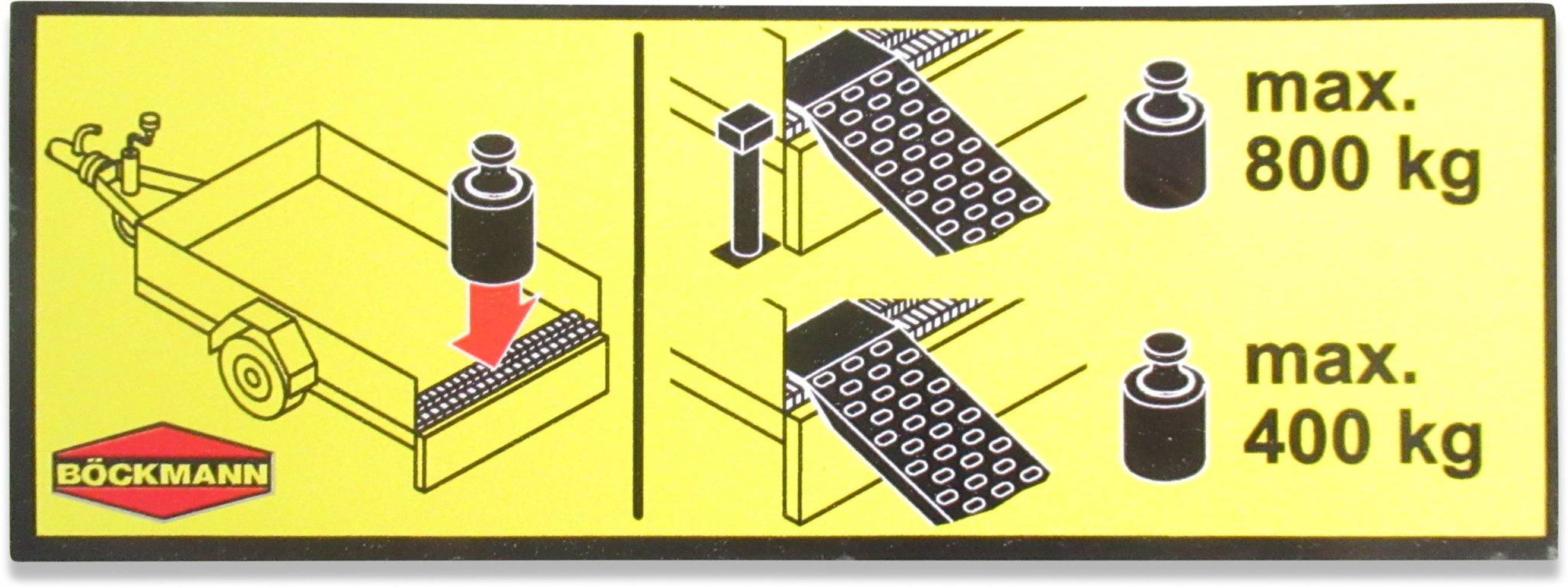 Sticker for overrun protection max. 800 kg / max. 400 kg.