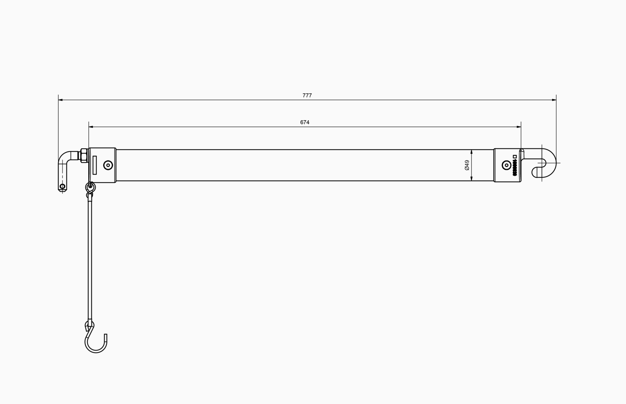 The box rail with a diameter of 49 mm (without bolt and hook, 740 mm); designed with a groove bolt for the MSS system.
