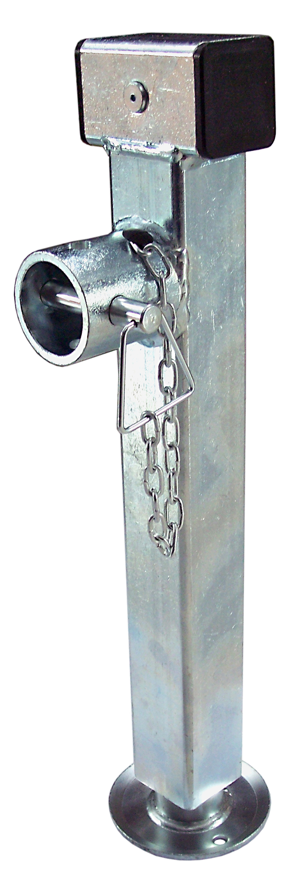 The square crank support can be swiveled and rotated to ensure a stable stand. The height of the support can be adjusted by turning the crank to raise the trailer to the correct height and thus create a level surface.