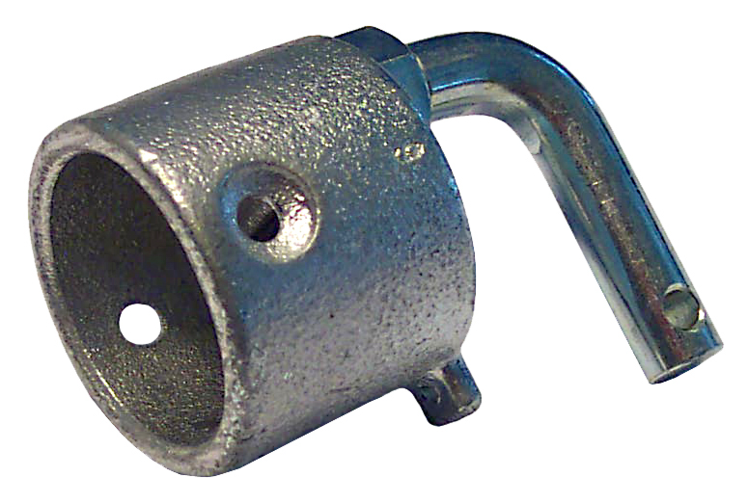 The spigot end piece for the stall bar on a horse trailer is a connecting element that is attached to the end of the stall bar.