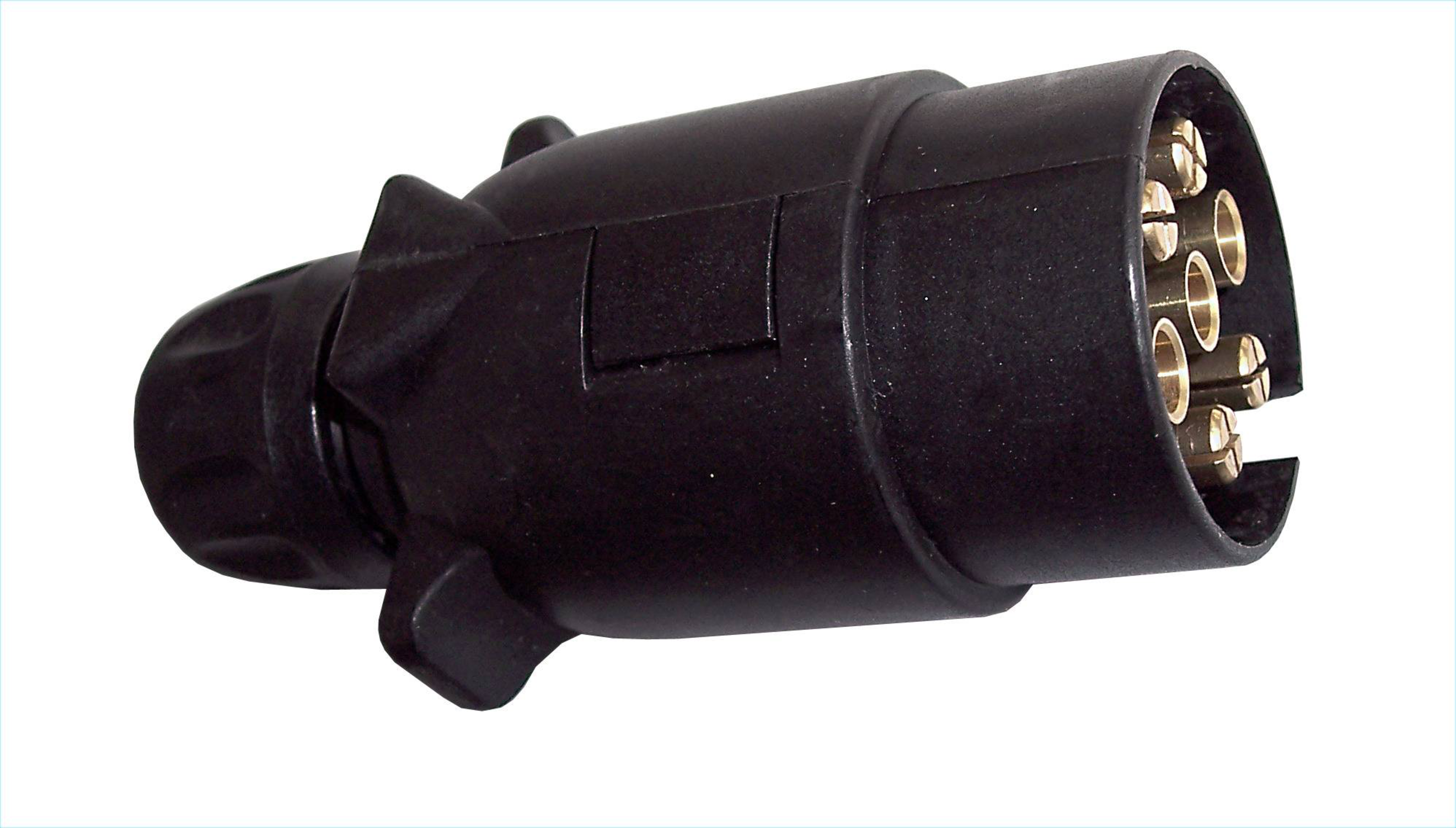 The 7-pin plastic connector plug is the plug connector for the electrical connection between towing vehicle and trailer.