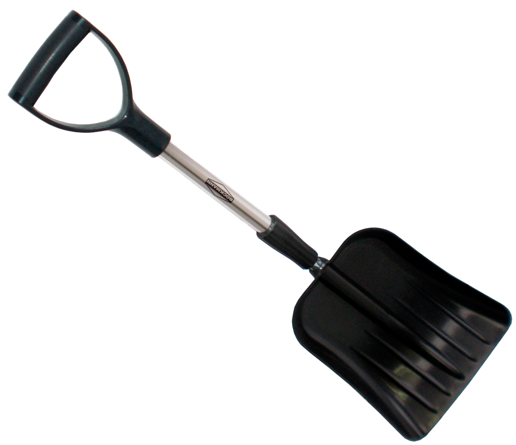 A lightweight telescopic snow shovel, the length of the handle can be individually adjusted.