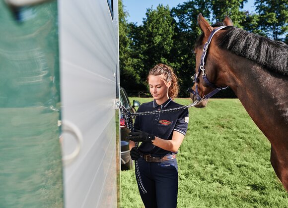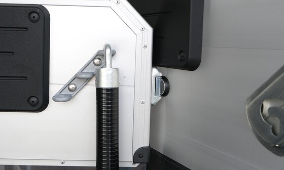 a telescopic broom, plastic shovel, door net, mirror, riding crop holder, feed troughs, large bridle hooks, pad holder, LED light and folding stool with safety catch are also included in the standard features.
