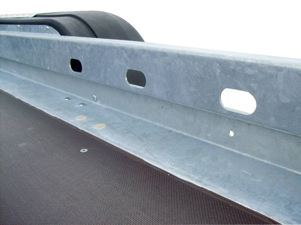 Robust, galvanised side walls (150mm high) with integrated lashing gallery, for exact lashing of the load.