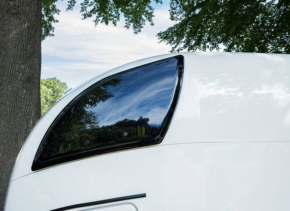 Dans l'intérieur, un sol en caoutchouc avec une structure textile antidérapante assure une bonne stabilité. Un concept d'espace généreux avec beaucoup de liberté de tête et de place pour la queue favorise le bien-être du cheval. Différents concepts de cloisons peuvent être adaptés non seulement à la taille du cheval, mais aussi à ses besoins spécifiques. Par exemple, l'aile arrière de la cloison centrale peut être repliée sur le côté pour rendre l'entrée du cheval encore plus spacieuse. Les fenêtres sont teintées et protègent du soleil et des reflets lumineux, car ceux-ci peuvent souvent déclencher de la panique dans le van.