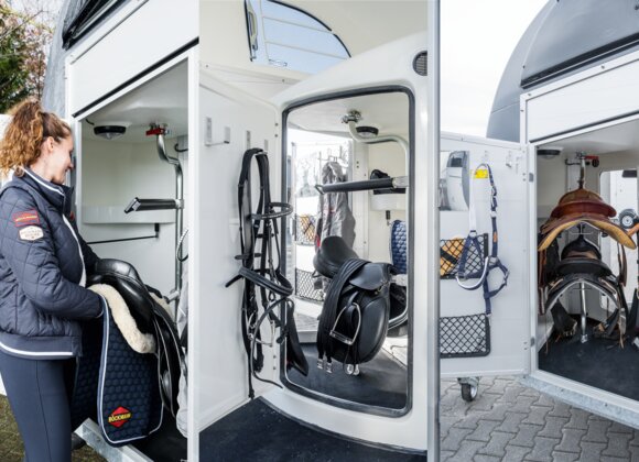 Le nouveau Big Champion SKA est équipé d'une sellerie facilement accessible de l'intérieur et de l'extérieur, dispose de parois extra hautes et offre des valeurs ajoutées uniques dans la pratique. Avec une hauteur intérieure de 2350 mm et une longueur intérieure de 3560 mm, le van en aluminium offre encore plus d'espace pour la tête des chevaux et beaucoup d'espace utile dans la sellerie.