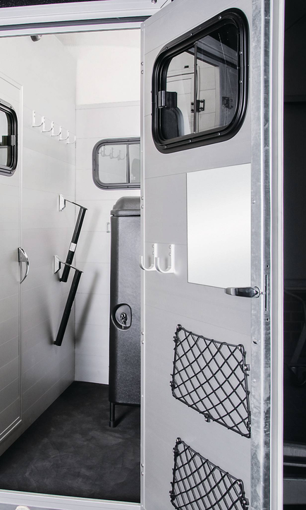 Design unique et découpage généreux de l'espace : le nouveau Big Portax, présentant une largeur intérieure de 1850 mm et une hauteur intérieure de 2400 mm, offre encore plus de place pour vous-même et vos chevaux. Les équipements de série comprennent, entre autres, le châssis World-Class .WCFplus. conforme au standard automobile et une grande sellerie séparée du box des chevaux par une cloison de 2100 mm de hauteur. Maintenant standard avec bat-flanc central capitonné.