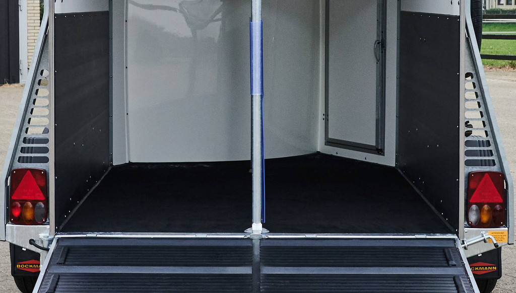 A l'aide du modèle Uno, vous pouvez amener votre cheval - ou votre jument avec son poulain - de manière confortable à la destination choisie. Et vous pouvez alors profiter des nombreuses solutions de détail offertes par Böckmann dans l'équipement de série : toit en polyester gris-clair-métallisé, revêtement original Böckmann du volet arrière, verrouillage 3 points de la porte - et de bien autres choses encore !