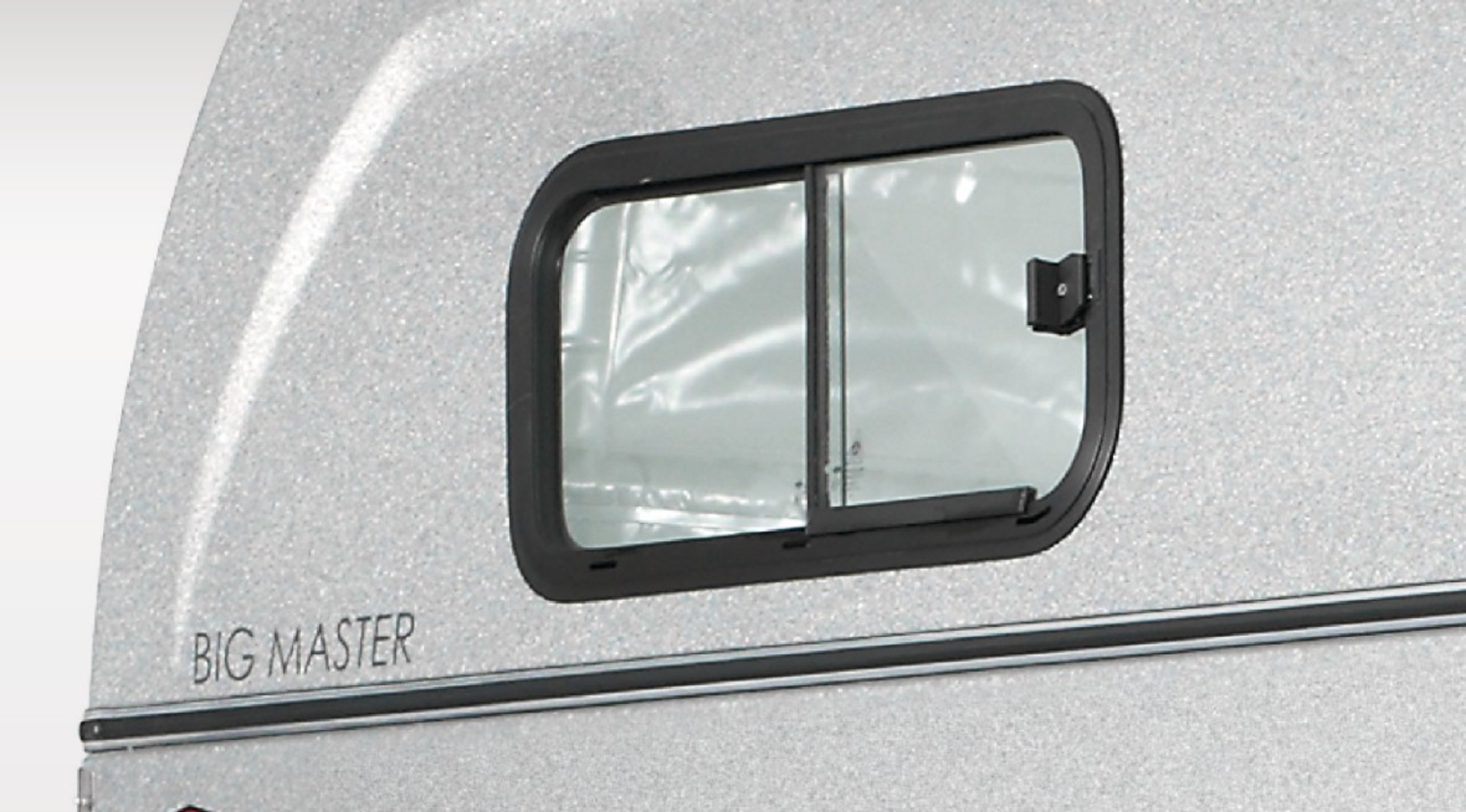 par fenêtres latérales coulissantes intégrées au toit ainsi que par des fenêtres coulissantes dans les portes ou les parois latérales en aluminium