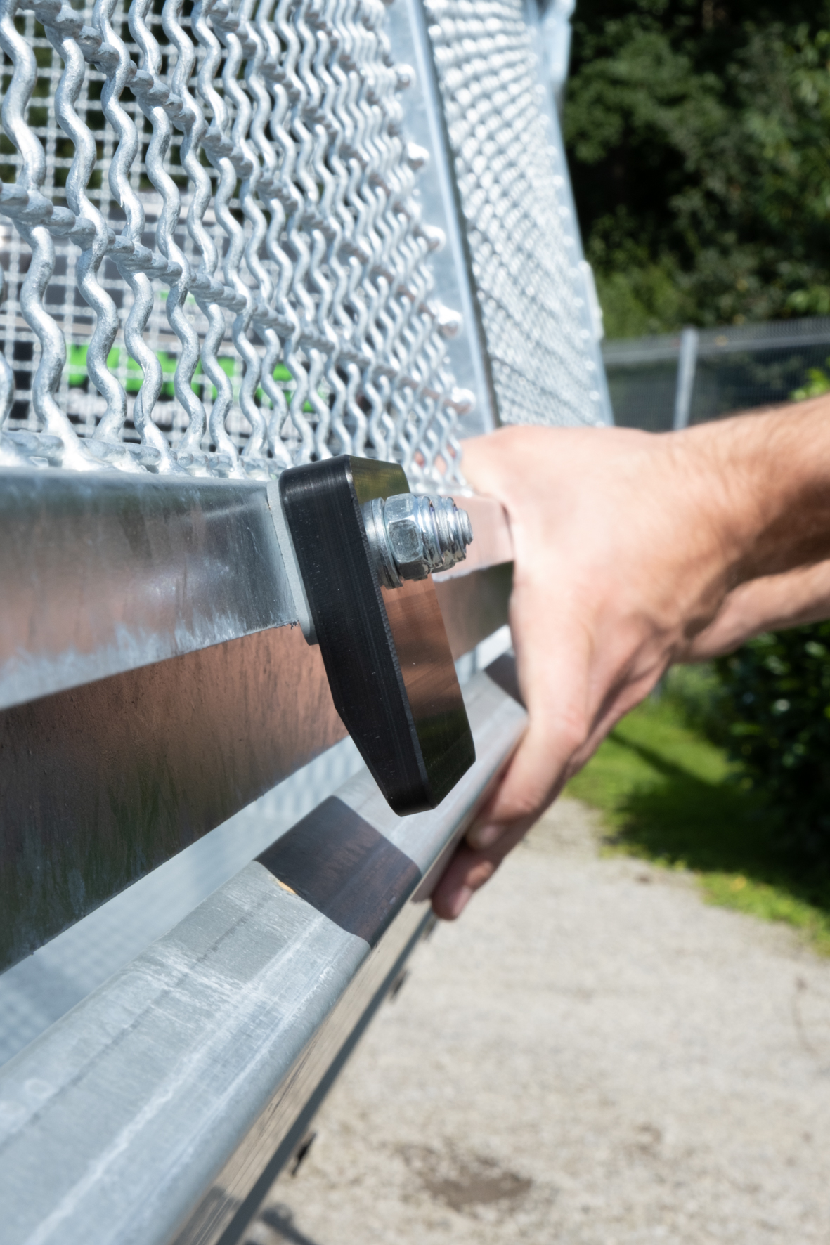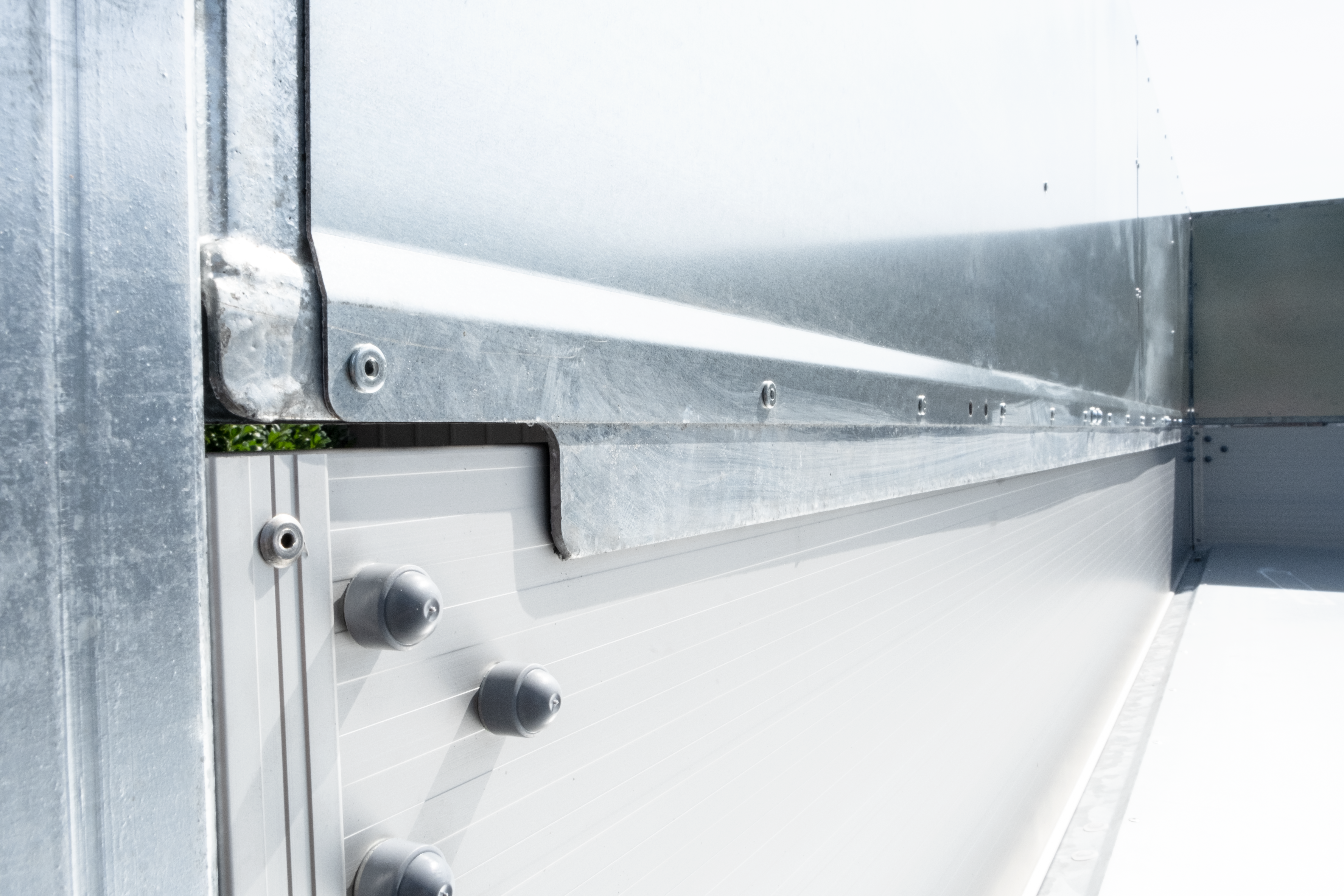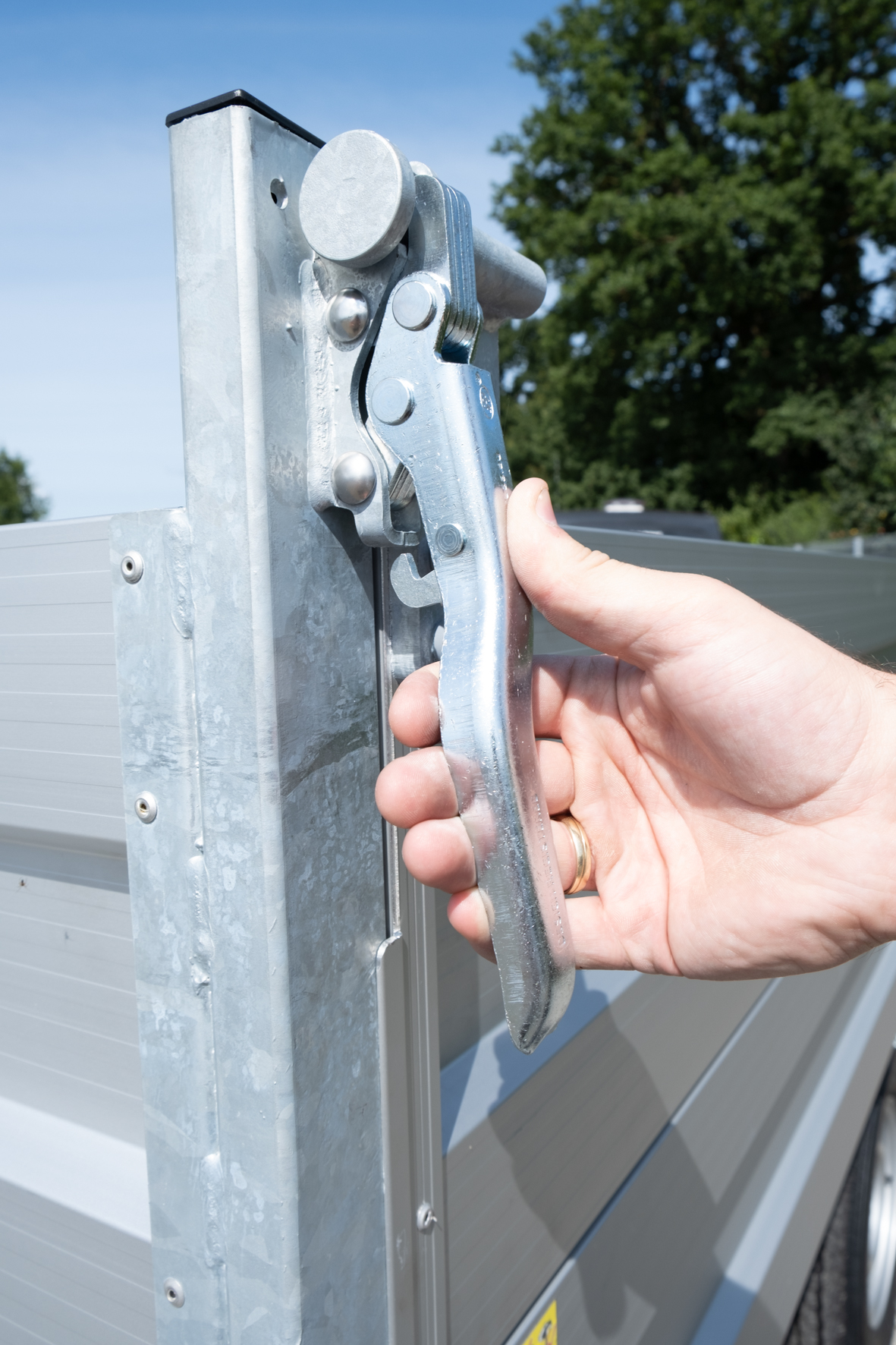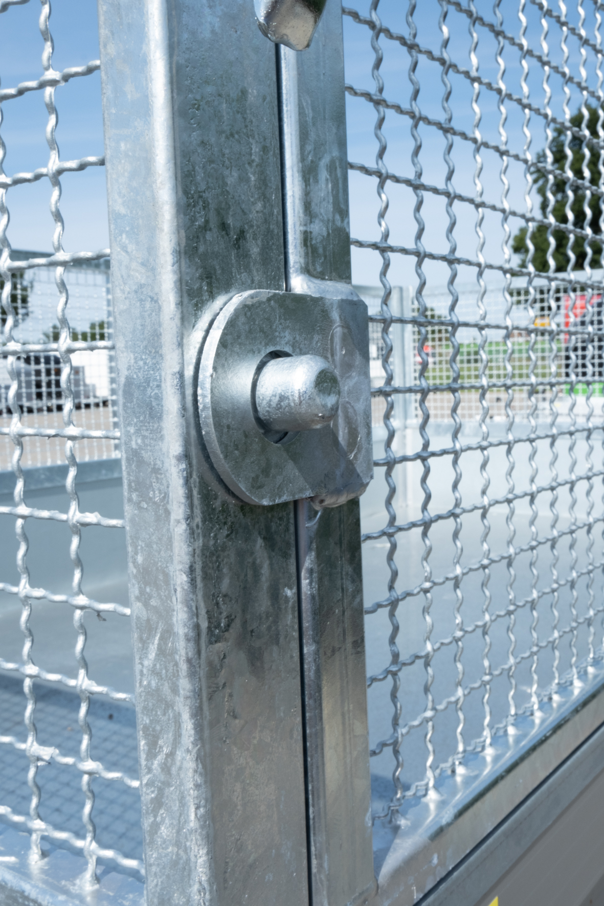 Samen hebben de bovenbladen een doorlopend draagprofiel voor optimale steun op het onderlegbord en betrouwbare afdichting. Het gerande ontwerp aan de binnenkant zorgt voor een veilige sluiting. Ook de slingerhendelvergrendelingen zijn nieuw en garanderen een gemakkelijke bediening met maximale stabiliteit en langdurig voordeel. Geavanceerde zijbegrenzers voorkomen openzwaaien en zorgen voor betrouwbare stabiliteit, zelfs bij gebruik van dekzeilen en containernetten. Het opzetstuk van plaatstaal en gaas heeft ook een scharniersysteem voor nog meer stabiliteit van het hele opzetstuk.