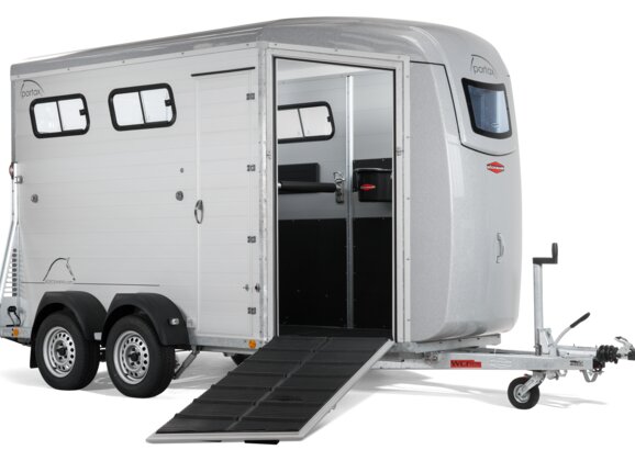 Bovendien mogen bij de Portax K de achterklep/1-vleugeldeurcombinatie of zeillift met geïntegreerd net en oprolfunctie niet ontbreken, evenmin als het achter en voor draaibare middenstijl-tussenschot met stootkussens. Het Portax-model met vooruitloop is een echt multitalent en biedt meer comfort, eerste klas kwaliteit en vooral heel veel plaats voor de uiteenlopende behoeften van paard en ruiter.