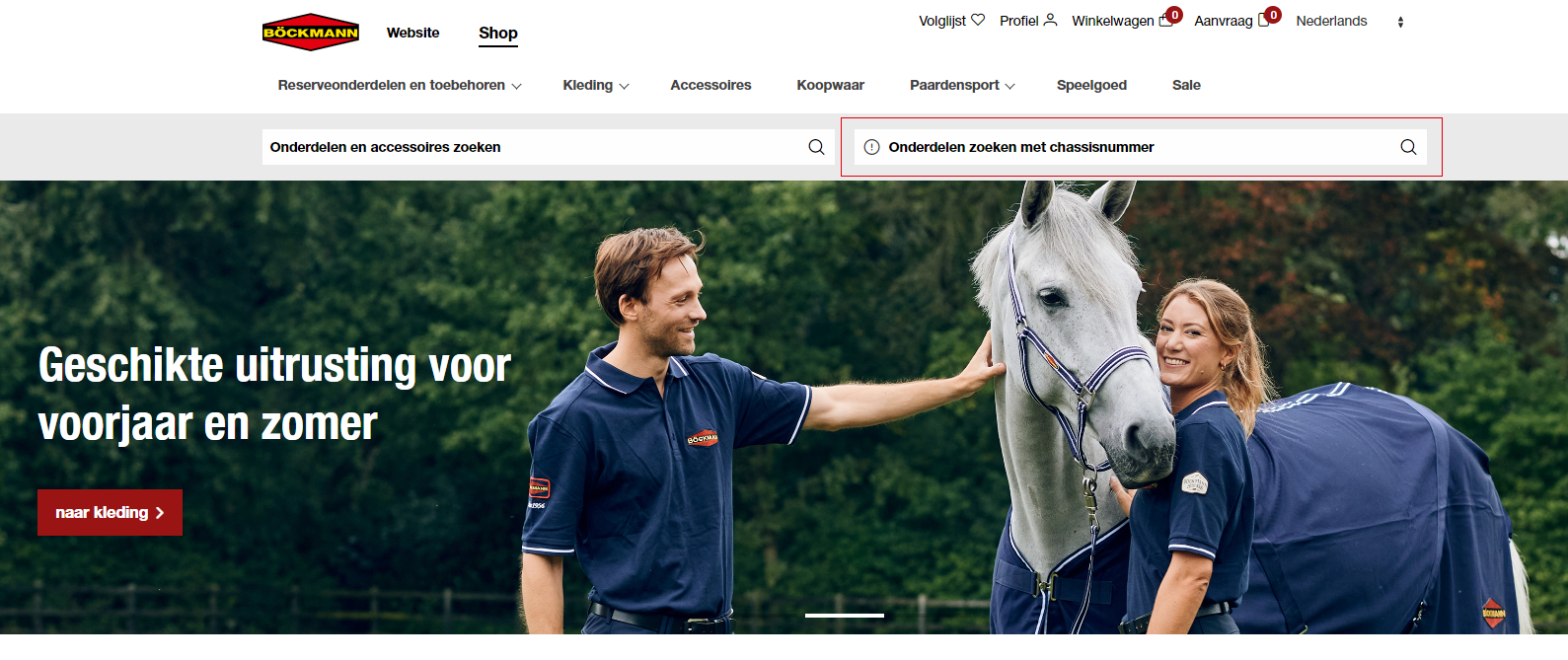 De online shop omvat direct al enkele duizenden producten en benadrukt ons eersteklas serviceconcept nog eens extra. Eindklanten kunnen hier eenvoudig accessoires bestellen en achteraf inbouwen of reserveonderdelen, verzorgingsproducten en uitrustingen kopen. Ook Böckmann ruitersportartikelen en -kleding kunnen direct via de shop worden besteld.