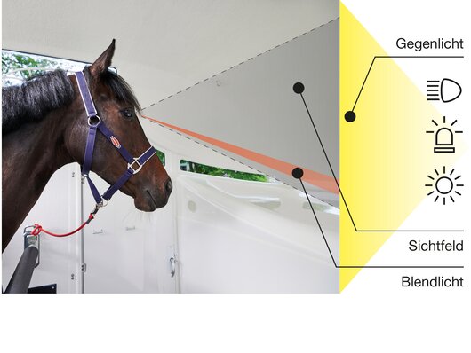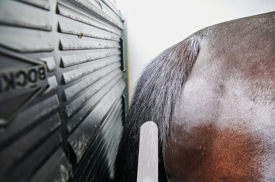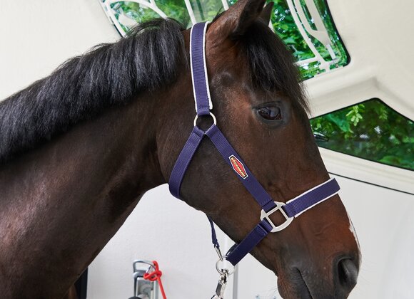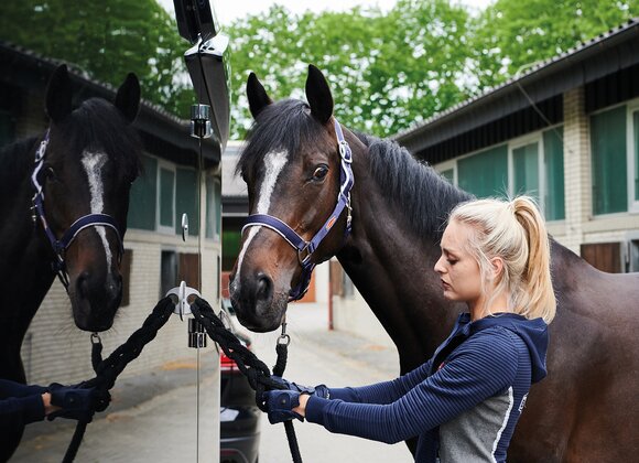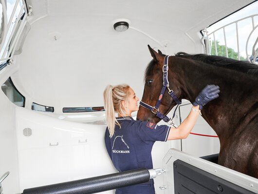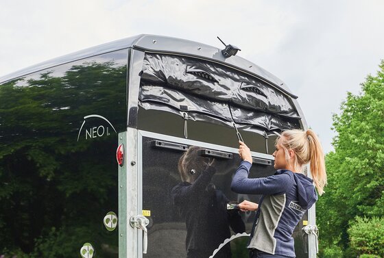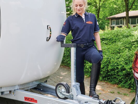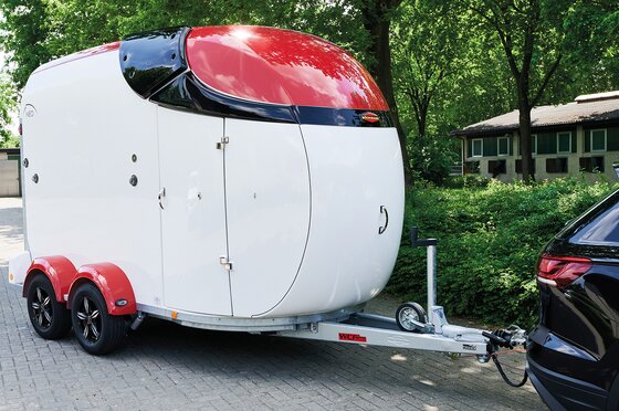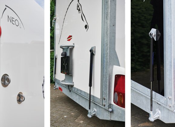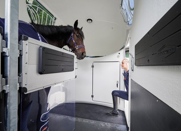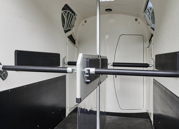 Begaanbare zadelruimte met manshoge toegangsdeur, van binnen en buiten toegankelijk. Naast de in hoogte horizontaal en verticaal verstelbare en uittrekbare zadelhouders maken een telescoopbezem, kunststof schep, deurnet, spiegel, zweephouder, voerbak, grote trenshaken en opklapkrukje met beveiliging deel uit van de standaarduitrusting.