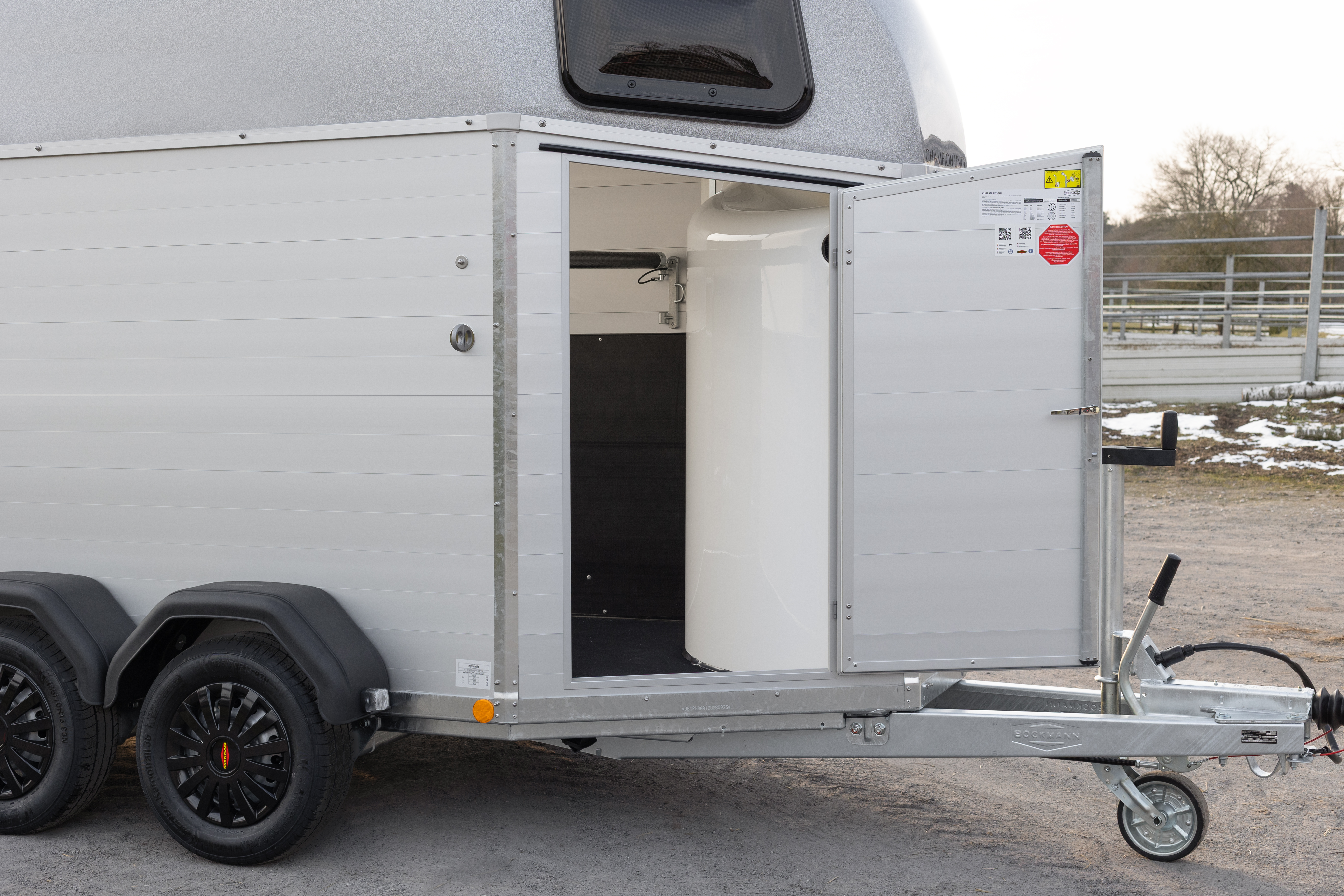 Als instapmodel voor een 1-paardsaanhanger biedt de Uno Esprit de beproefde Böckmann-kwaliteiten en combineert hoge kwaliteit met een aantrekkelijke prijs. Het model is standaard verkrijgbaar in granietgrijs en antraciet. De kap is leverbaar in zilver-metallic, antraciet-metallic, rood-, groen- of donkerblauw-metallic, evenals in wit. Profiteer van praktische accessoires zoals het gepolijst paniek-boxenstang-systeem met kettingen en de comfortabele zijbekleding voor nog meer veiligheid en comfort.